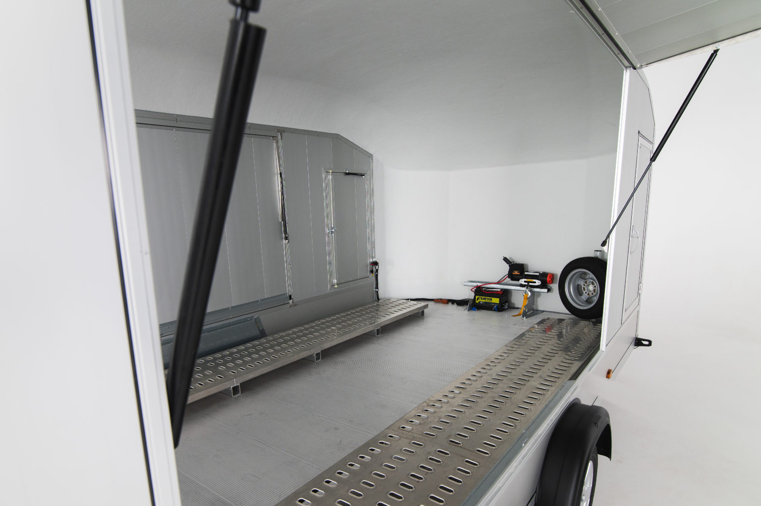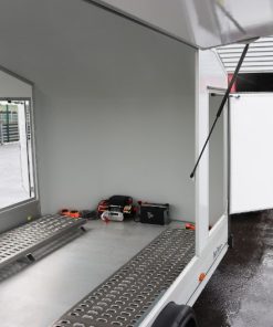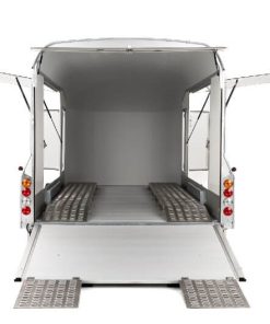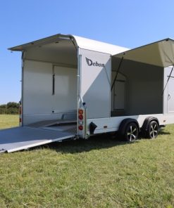 Debon Roadster 1000 skaphenger er designet for å håndtere store transportoppgaver med enkelhet og stil. Med en totalvekt på 3500 kg og en imponerende nyttelast på 2535 kg, er denne to-akslede hengeren ideell som biltransporter for mindre kjøretøy eller andre krevende laster. Konstruert med robuste sandwichpanelvegger, tilbyr den både styrke og langvarig holdbarhet. Praktiske sideluker og sidedører på begge sider gir enkel tilgang, mens den kombinerte dør- og rampeløsningen bak forenkler lasting og lossing. Debon Roadster 1000 skiller seg ut med sitt avanserte Pullman 2 hjulfjæringssystem, som sikrer enestående kjørekomfort og stabilitet, selv på lange turer. Med mulighet for Tempo 100-godkjenning er den perfekt for lengre transporter. Et bredt utvalg av ekstrautstyr lar deg tilpasse hengeren etter dine behov. Velg Debon Roadster 1000 for en skaphenger som kombinerer kapasitet, fleksibilitet og toppmoderne design!