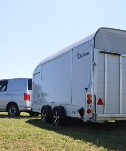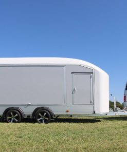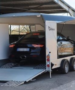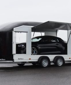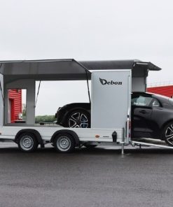 Debon Roadster 1000 er en romslig to-akslet skaphenger med 3500 kg totalvekt og 2535 kg nyttelast. Utstyrt med sideluker, sidedører, sandwich-konstruksjon og kombinert dør-rampe, gir den suveren kjørekomfort med Pullman 2 fjæring. Perfekt for mindre biler, med mulighet for Tempo 100-godkjenning.