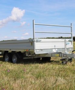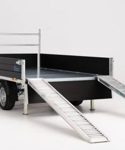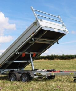 Debon tipphenger er en robust toakslet henger med 3-veis tipp på større modeller, perfekt for enkel lasting. Med avtagbare aluminiumskarmer, elektrohydraulisk pumpe og stålplateforsterket gulv, tilbys den i lengder fra 306–360 cm og bredder på 155–180 cm. Kan Tempo 100-godkjennes.