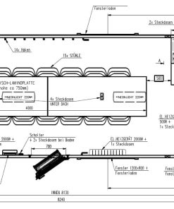 Spise-, kontor- og toalettvogn for 14 personer. Vi kan tilpasse alle vognene etter kundens behov.