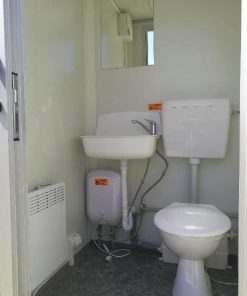 Den er utstyrt med fasiliteter som vannklosett med kvern, varmt og kaldt vannforsyning, gjennomstrømmingsvarmer, takbelysning (230V), panelovn (500W), speil, toalettpapirholder og klesknagg på innsiden av døren. Perfekt for arbeidsgrupper, som midlertidig bolig under oppussing, eller tilpassede løsninger etter behov. Vi skreddersyr alle våre vogner for å møte dine spesifikke krav.